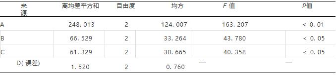 结果见表2,方差分析见表3
